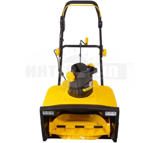Устройство работает на базе электрического синхронного щеточного двигателя мощностью 2500 Вт со скоростью 3000 об./мин. Ширина захвата снежной массы составляет 50 см, высота – 30 см. Захваченный снег аккуратно отбрасывается в сторону. Корпус с ковшом установлен на металлическую раму и оснащен 2 широкими колесами. Модель несамоходная, однако удобная конструкция, наличие колес и длинной ручки обеспечивают комфортность ее передвижения оператором по относительно твердым поверхностям. Сборная металлическая ручка имеет оптимальную высоту, верхняя часть загнута и оснащена прорезиненным покрытием, исключающим скольжение и промерзание. Рычаг управления вынесен в верхнюю зону рукоятки в пределах досягаемости руки. Снегоуборщик электрический оснащен двумя фарами для удобства работы в темноте. Агрегат весит 15,8 кг, отличается компактными размерами, удобен в хранении и использовании на небольших и нестандартных по конфигурации участках.
